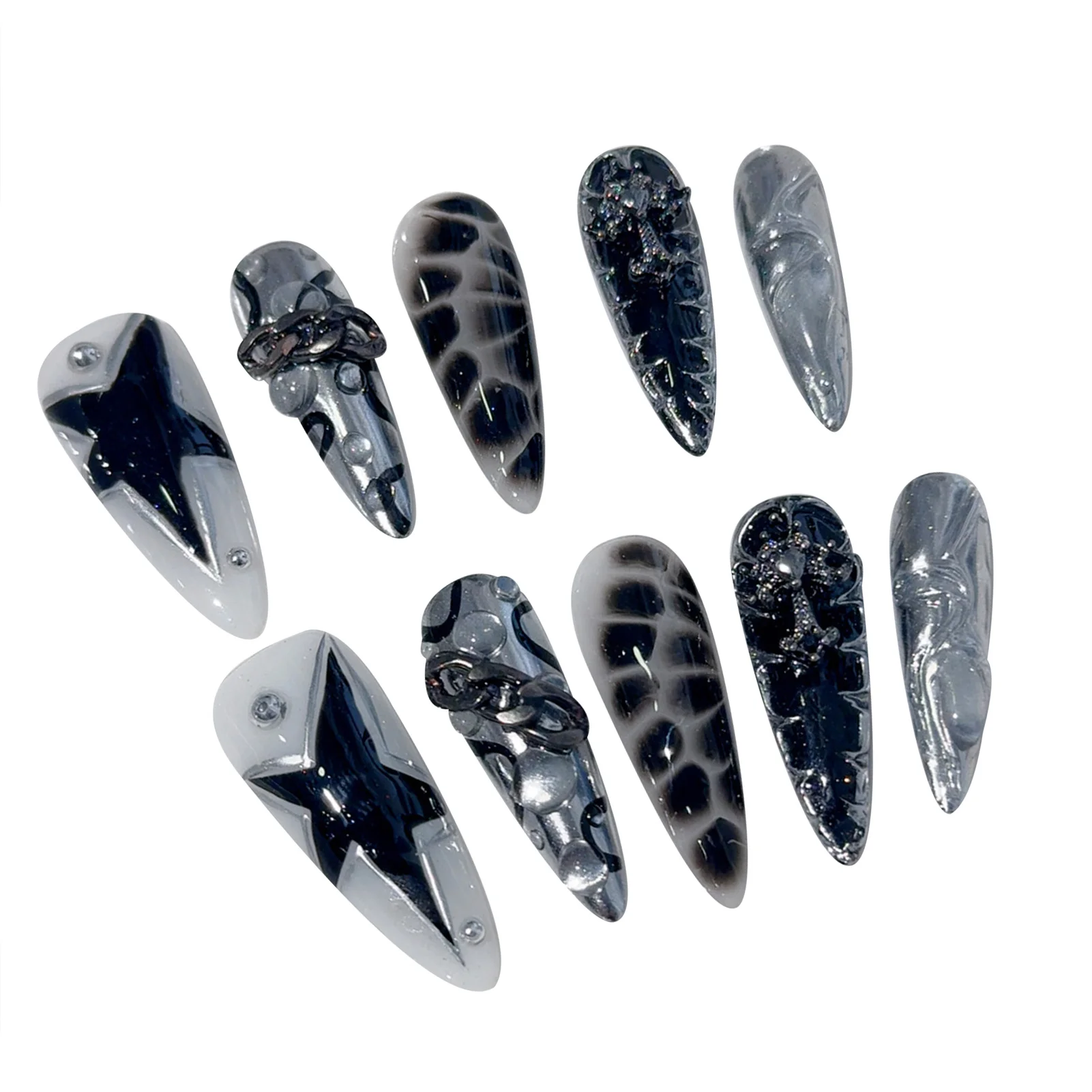 Reusable and Durable: Handmade with care, these punk style false nails are reusable and long-lasting, allowing you to enjoy their fashion glossy finish and star design multiple times without compromising quality.