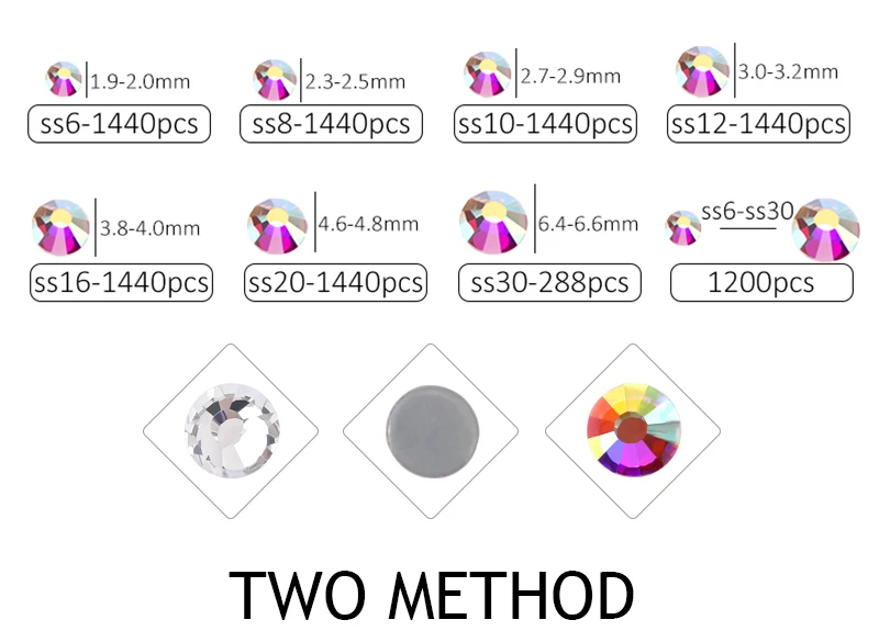 - Quantity: SS6-SS20 (1440Pcs/bag) , SS30(288Pcs/bag)